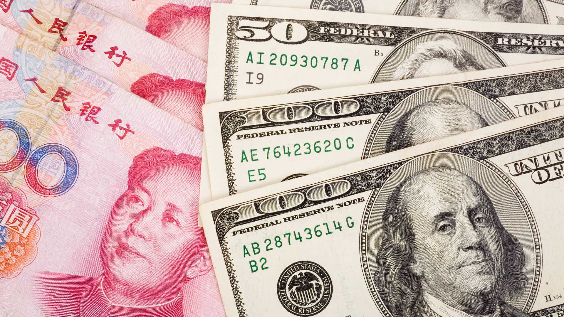 Китайский юань и доллары США. Архивное фото